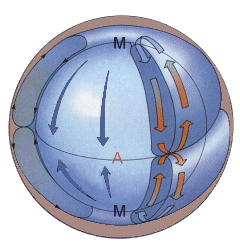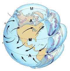 mutató fekete nyilak jelzik), az uralkodó nyugatias szelek,és a poláris keleti